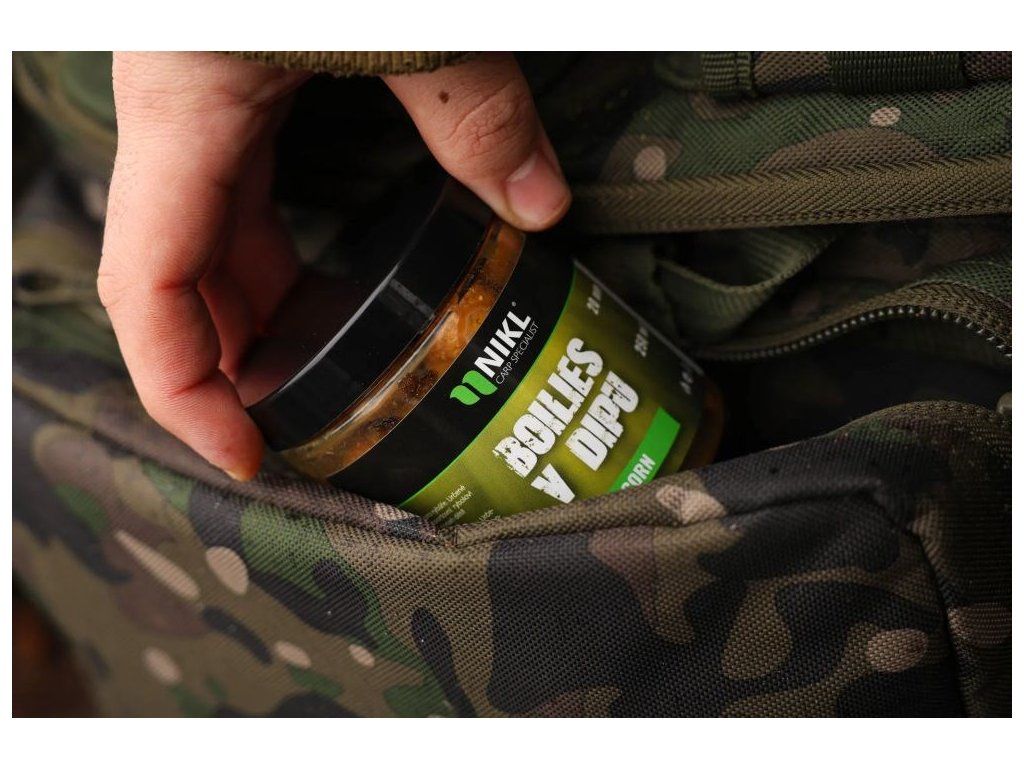 Nikl Boilies v dipu Corn představuje mimořádně účinnou nástrahu, která je díky silné vrstvě koncentrovaného dipu připravena pracovat okamžitě po dopadu do vody. Charakteristický kukuřičný profil stojí na tom, co kapři milují – kukuřici, kterou často vyhledávají a „vyluxují“ do posledního zrnka, takže nástraha rychle přitáhne pozornost i na vodách s vysokým rybářským tlakem. Silné nadipování zajišťuje, že boilies uvolňuje atraktory rovnoměrně a intenzivně, a tím láká ryby i z větší vzdálenosti.