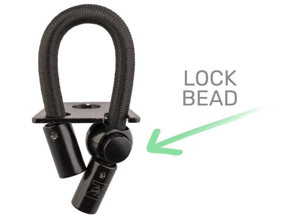 Pojistka se jednoduše namontuje pod jakoukoli běžnou rohatinku a snadno se přizpůsobí průměru vašich prutů díky nastavitelné délce fixační gumy. Bezpečné zajištění prutu obstará posuvný kovový korálek.